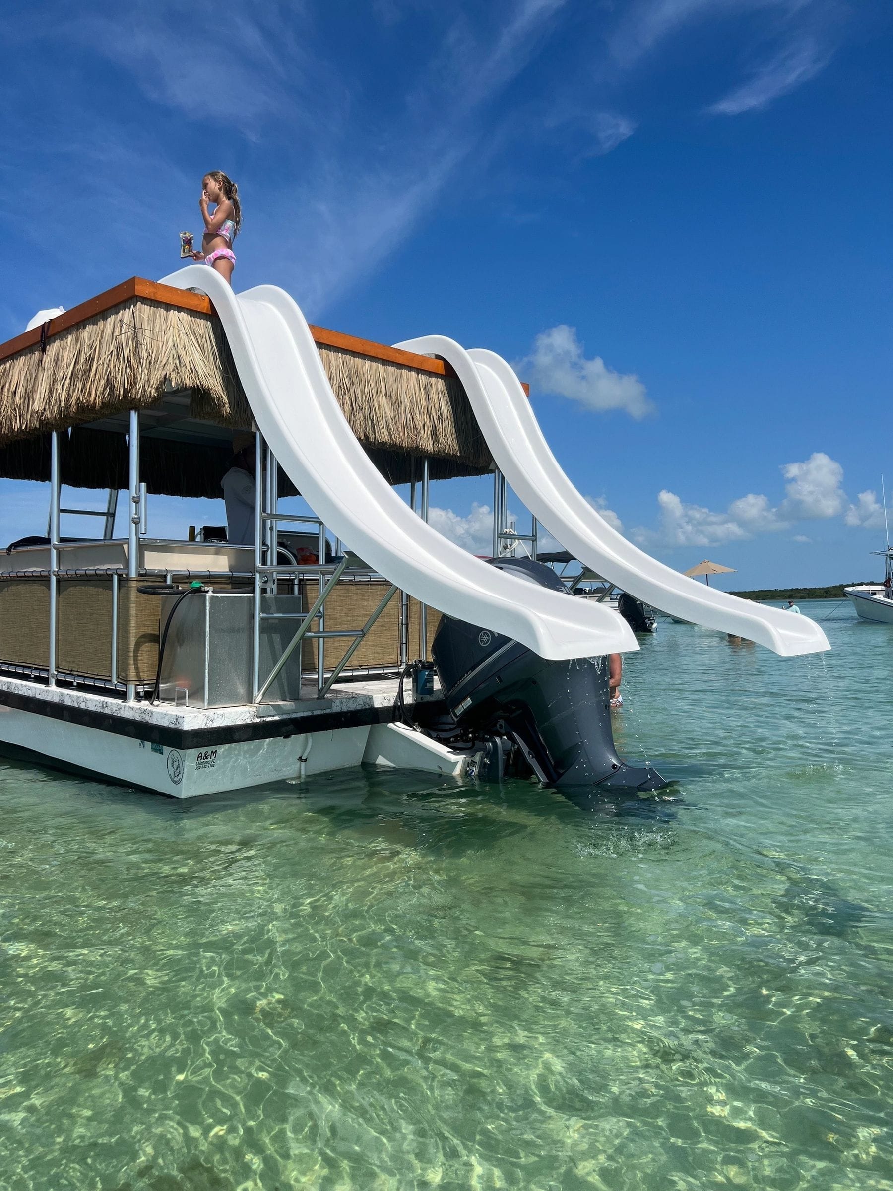 Want a little more adventure? Charter our Double Slide Tiki. Enjoy the backcountry sandbars of Key West. Whether you want a family friendly day, locals sandbar day, bachelorette party, Boys day out, sunset cruise or a combo, we’ve got you covered to create a Key West vacation of a lifetime. Our spacious double deck Slide Tiki Barge is perfect.